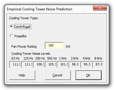 Strutt|Input Data|Empirical|Cooling Tower inserts sound power levels into the active row of the worksheet.