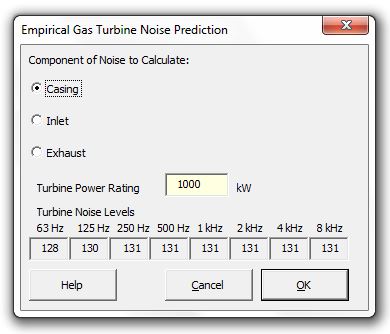 Strutt|Input Data|Empirical|Gas Turbine inserts sound power levels into the active row of the worksheet.
