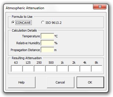 Strutt|Environmental Noise|Atmospheric Attenuation inserts attenuation (dB), due to atmospheric conditions, into the active row of the worksheet.