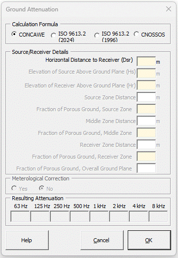 Strutt|Environmental Noise|Ground Attenuation inserts attenuation (dB) into the active row of the worksheet.