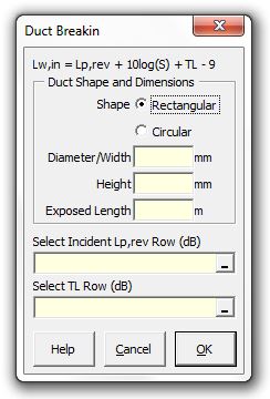 Strutt|Mechanical Services|Duct Breakout|Duct Breakin inserts the sound power level of sound transmitted into a duct into the active row of the worksheet.