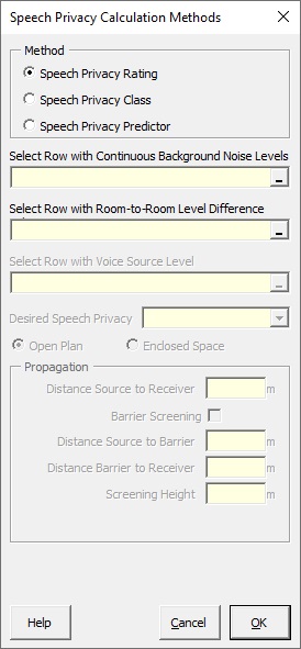 Strutt|Ratings|Sound Insulation|Speech Privacy Options provides two methods for calculating Speech Privacy: